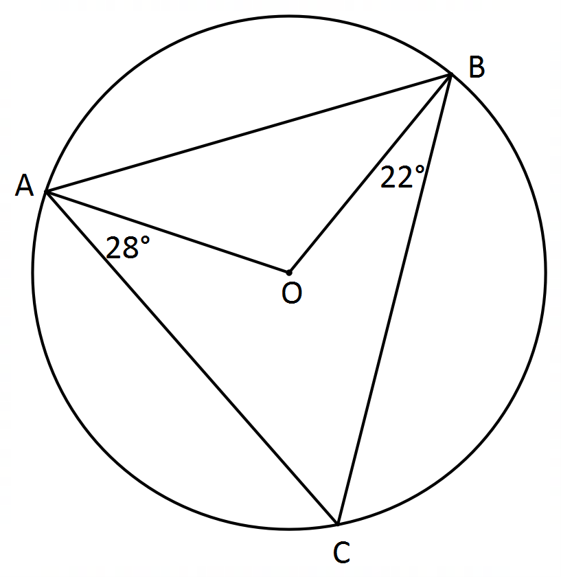 Question 10 of 10\(O\) is the centre of the circle. \(\angle CAO=28^\circ ,\,\angle CBO=22^\circ\).