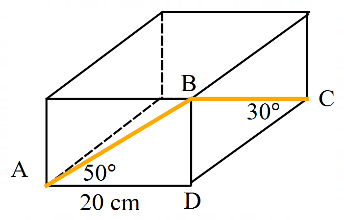 Question 8 of 10\(AB\) and \(BC\) are wooden support struts on a crate. Find the total length of wood required to make the two struts (to the nearest centimetre).