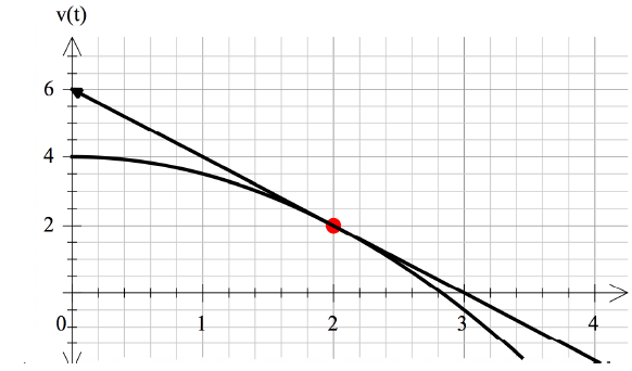 Question 8 of 11Consider the adjacent velocity-time graph. (\(v(t)\) in \(cms^{−1}\)) From the graph find the instantaneous acceleration of the object for \(t = 2\) seconds.