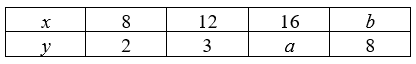 Question 15 of 24The adjacent table shows the values of \(x\) and \(y\) which are in direct proportion. The values of \(a\) and \(b\) are?