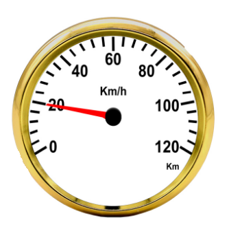 Question 11 of 12A dial measure \(\mathrm{km} / \mathrm{h}\) in measures of \(10 \mathrm{~km} / \mathrm{h}\). Calculate