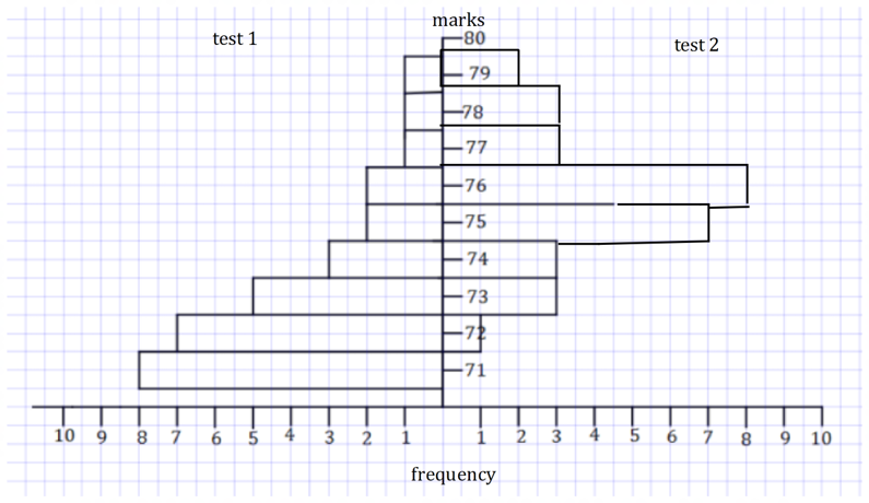 A teacher conducted two tests of mathematics in a class the result are shown in the following graph.