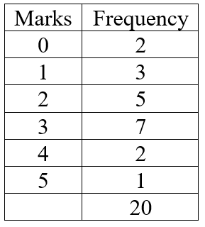 The adjacent table represents marks given to a group of 20 students.